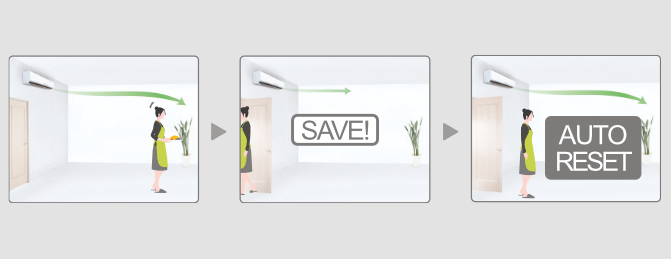 Per garantire la riduzione dei consumi, il sensore di presenza rileva i movimenti delle persone nella stanza e fa funzionare il climatizzatore a capacità ridotta quando la stanza è vuota. Al ritorno delle persone, ripristina automaticamente la modalità operativa precedente.