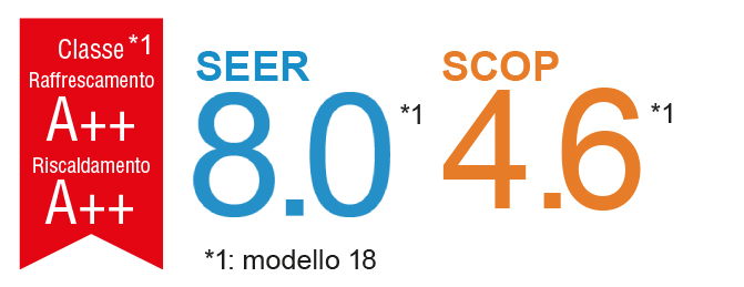 L’efficienza di scambio termico è stata notevolmente migliorata grazie al nuovo scambiatore di calore ibrido, raggiungendo i più alti livelli di SEER e SCOP della categoria.
