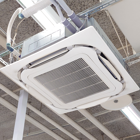 Sala riunioni con soffitto alto o installazione a vista Unita cassette o a soffitto / canalizzate Distribuiscono aria in modo uniforme, impatto estetico ridotto.